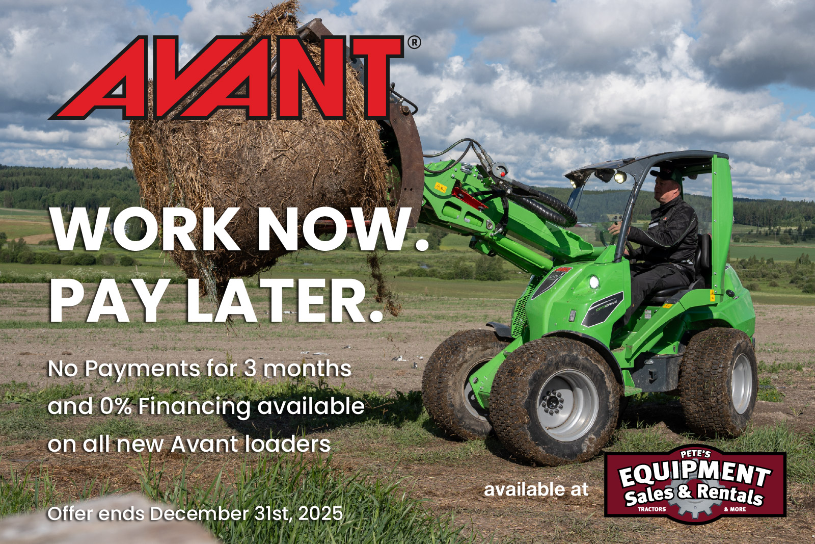 With no payments for 3 months on new Avant loaders, you can put your green machine to work right now and deal with the paperwork in 2026.
